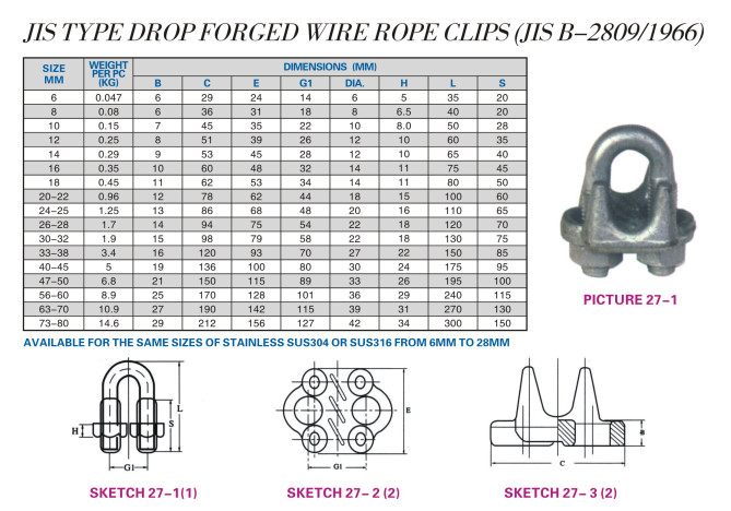 JIS TYPE DROP FORGED WIRE ROPE CLIPS